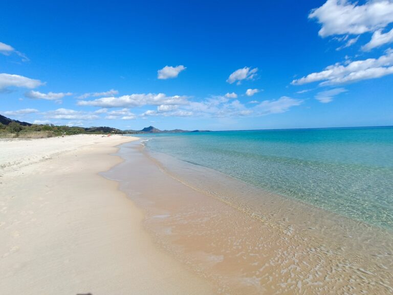 Punta Molentis is a small cove on a granite peninsula inside the Capo Carbonara Marine Protected Area. The beach is known for crystal-clear water, Mediterranean scrub and a compact, postcard-like setting with limited summer access.