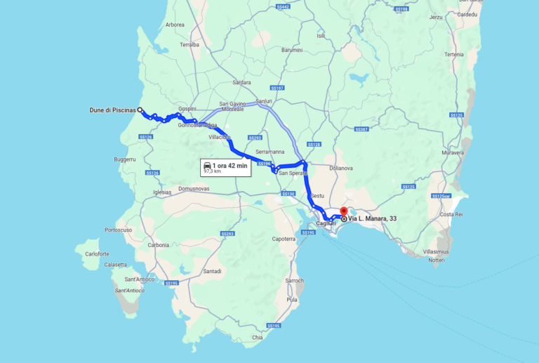 Porto Pino lies in the Gulf of Palmas and is known for long beaches, clear shallow water and the white dunes of Is Arenas Biancas. Behind the coast, Aleppo pine and Mediterranean scrub create one of the most distinctive landscapes in south-west Sardinia.
